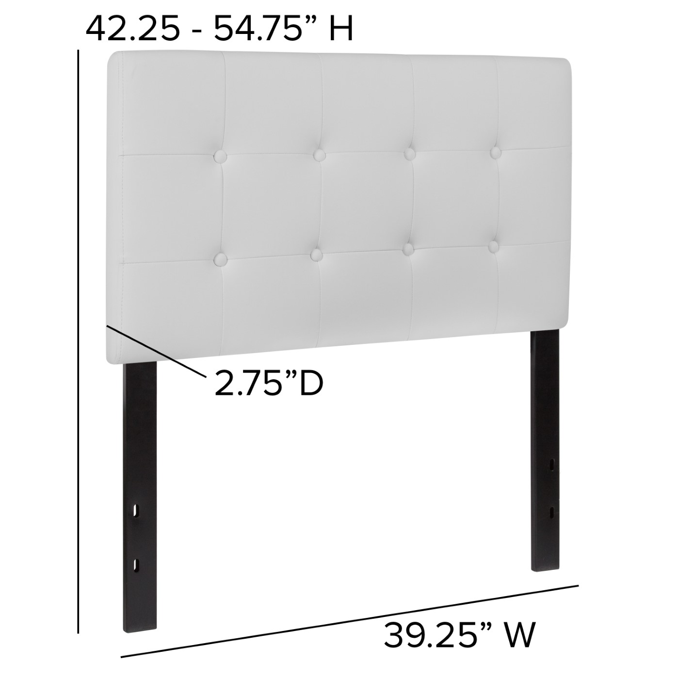 - Headboard Size: 39.25"W x 2.75"D x 22.5"H