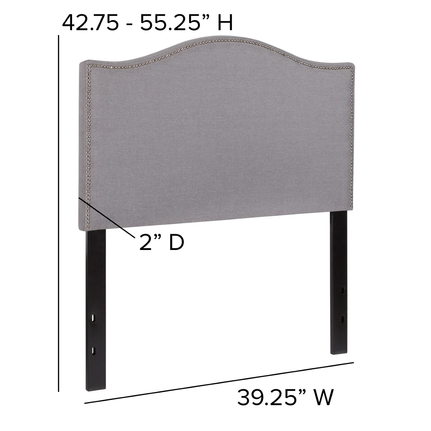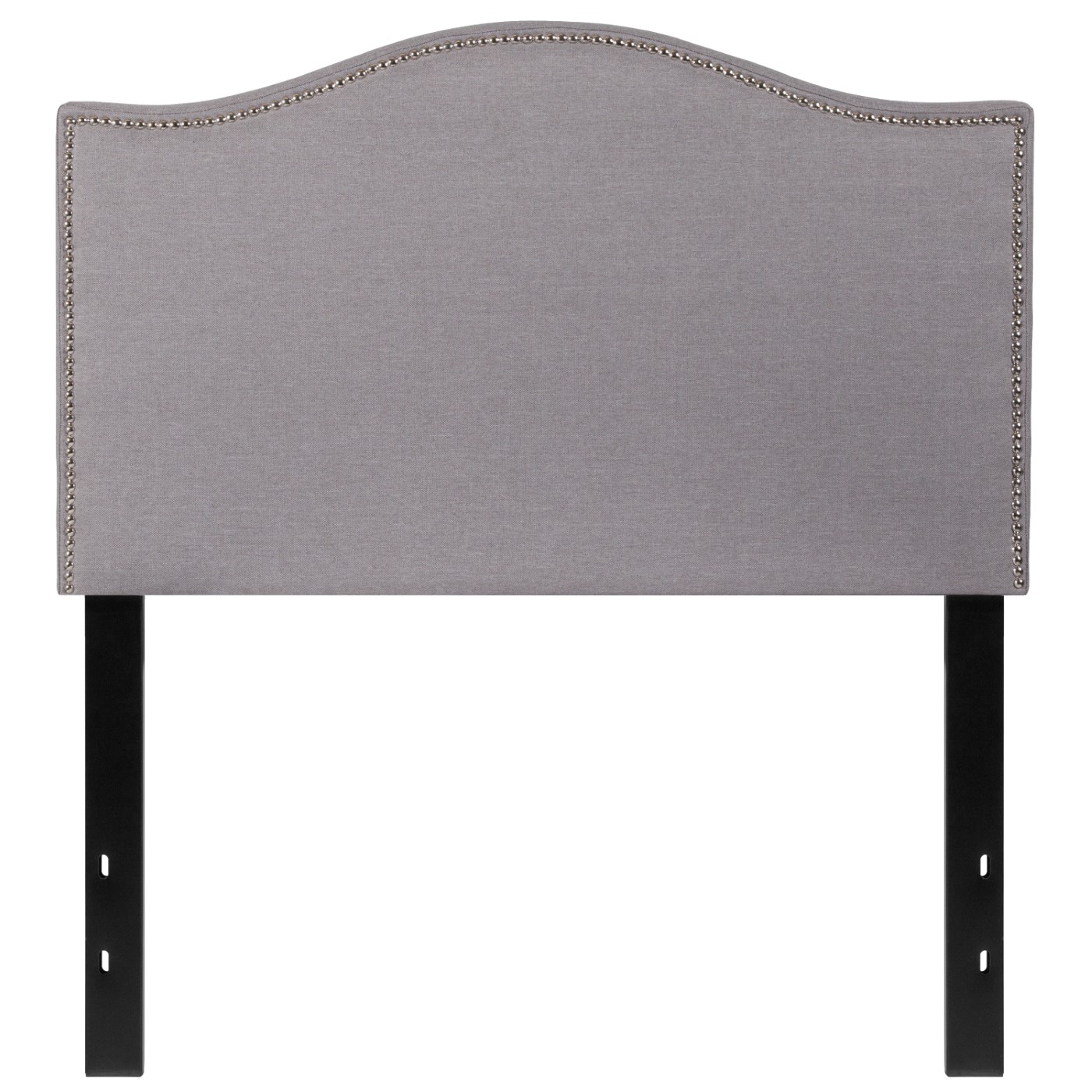 LEXINGTON UPHOLSTERED TWIN SIZE HEADBOARD WITH ACCENT NAIL TRIM IN LIGHT GRAY FABRIC: FREE SHIPPING!