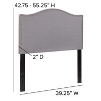 LEXINGTON UPHOLSTERED TWIN SIZE HEADBOARD WITH ACCENT NAIL TRIM IN LIGHT GRAY FABRIC