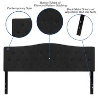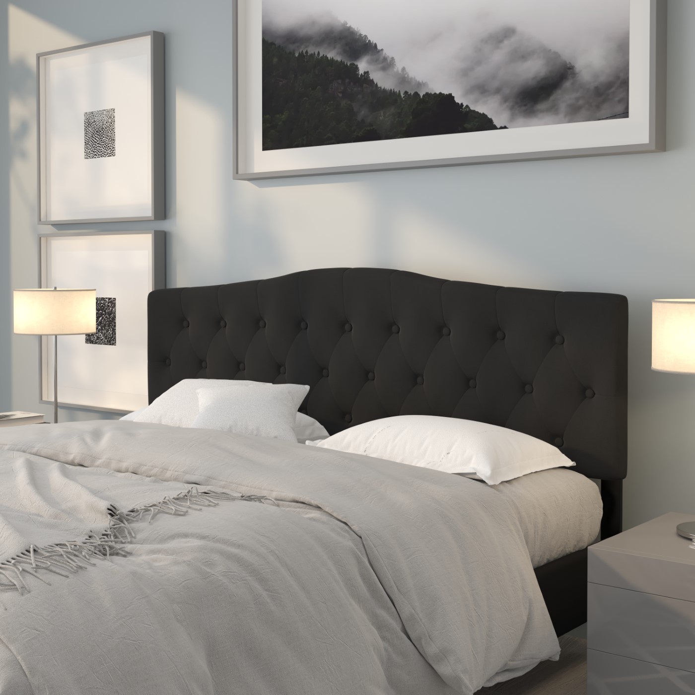 CAMBRIDGE TUFTED UPHOLSTERED KING SIZE HEADBOARD IN BLACK FABRIC: FREE SHIPPING!