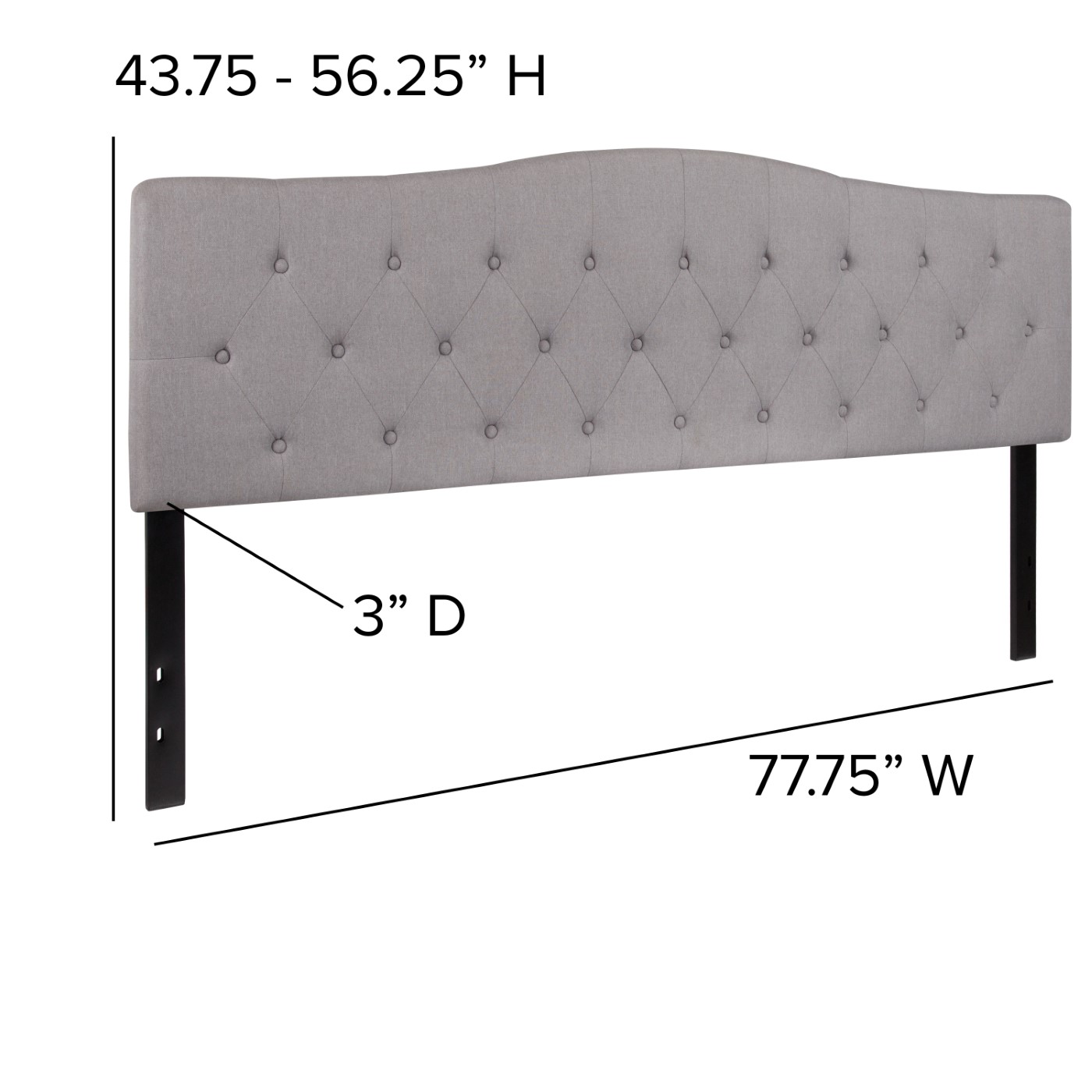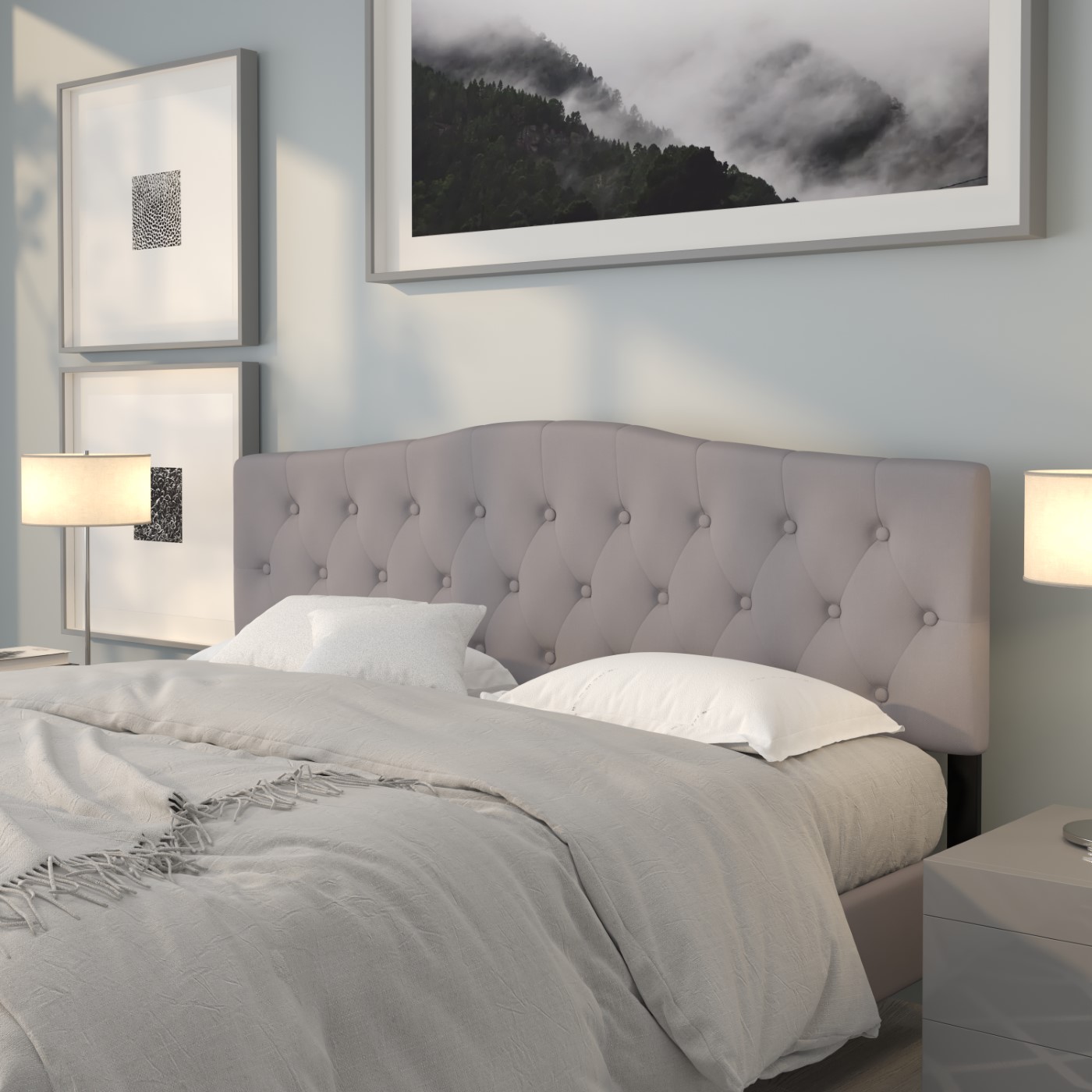 CAMBRIDGE TUFTED UPHOLSTERED KING SIZE HEADBOARD IN LIGHT GRAY FABRIC: FREE SHIPPING!
