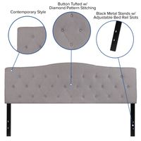 CAMBRIDGE TUFTED UPHOLSTERED KING SIZE HEADBOARD IN LIGHT GRAY FABRIC