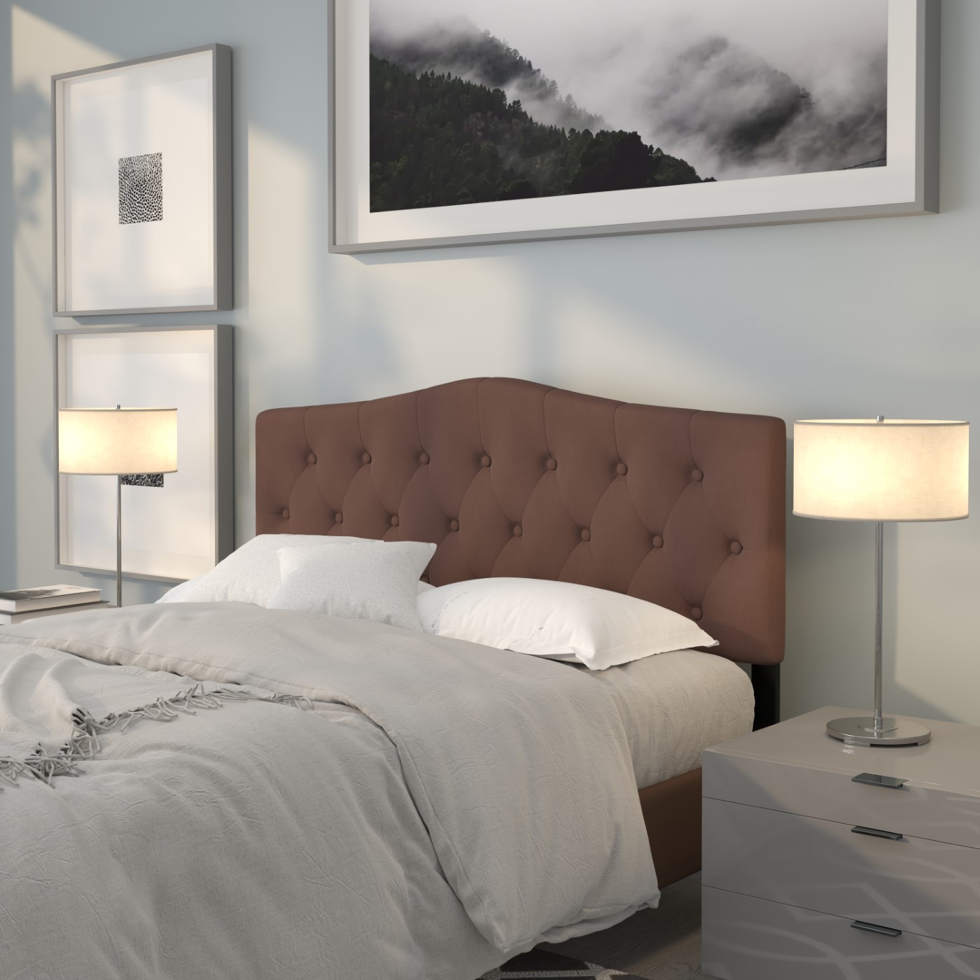 CAMBRIDGE TUFTED UPHOLSTERED QUEEN SIZE HEADBOARD IN CAMEL FABRIC: FREE SHIPPING!