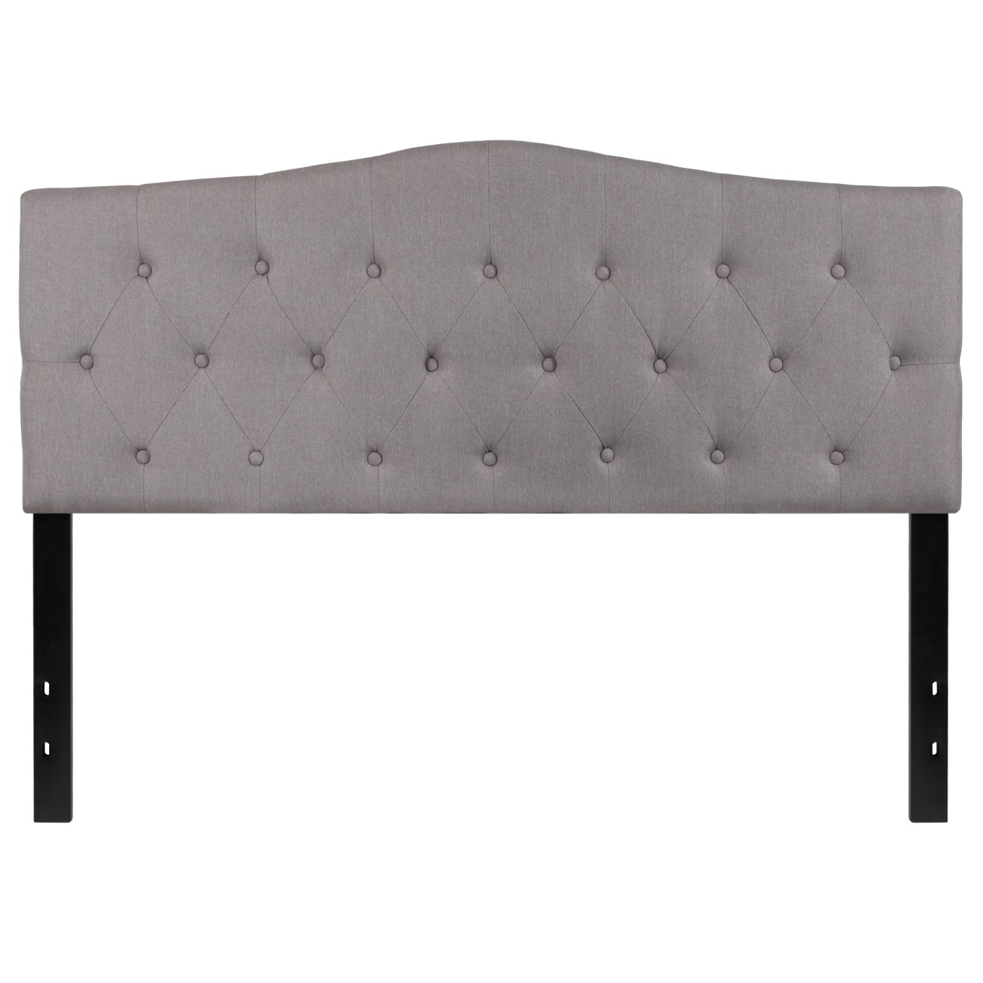 CAMBRIDGE TUFTED UPHOLSTERED QUEEN SIZE HEADBOARD IN LIGHT GRAY FABRIC