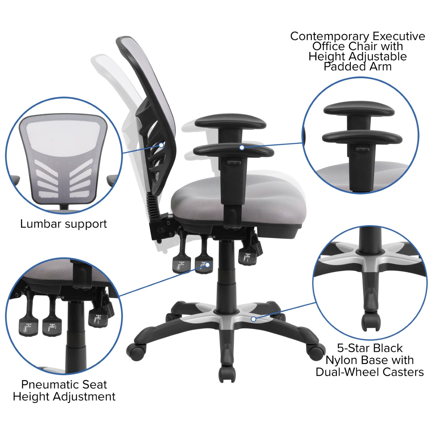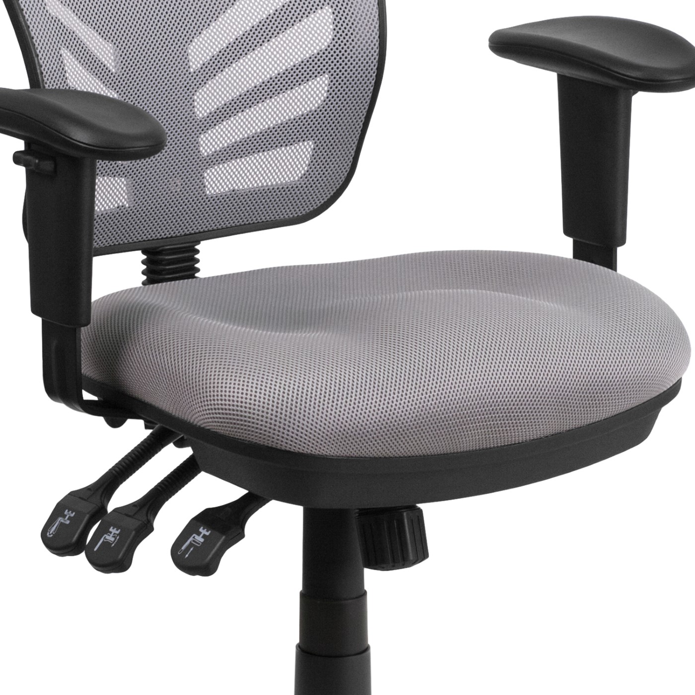 MID-BACK GRAY MESH MULTIFUNCTION EXECUTIVE SWIVEL ERGONOMIC OFFICE CHAIR WITH ADJUSTABLE ARMS