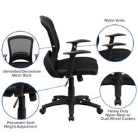 MID-BACK DESIGNER BLACK MESH SWIVEL TASK OFFICE CHAIR WITH ARMS