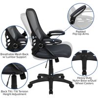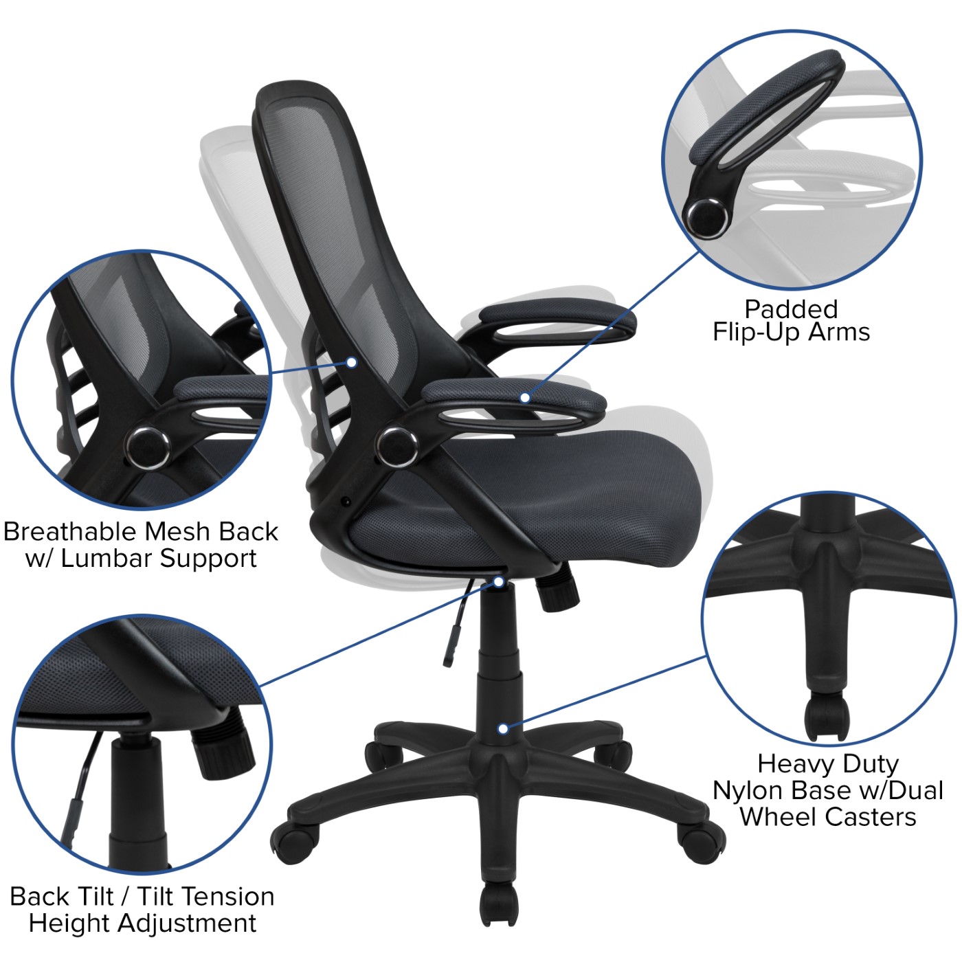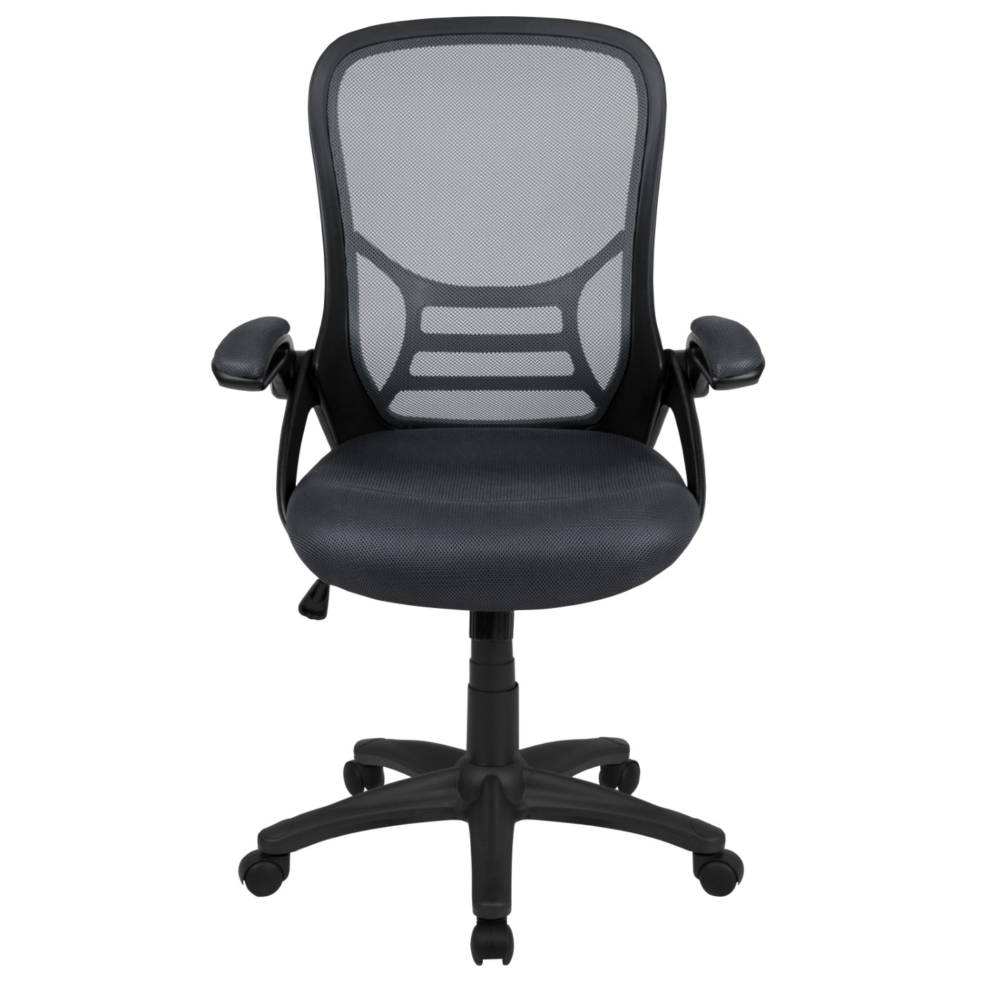 HIGH BACK DARK GRAY MESH ERGONOMIC SWIVEL OFFICE CHAIR WITH BLACK FRAME AND FLIP-UP ARMS: FREE SHIPPING!