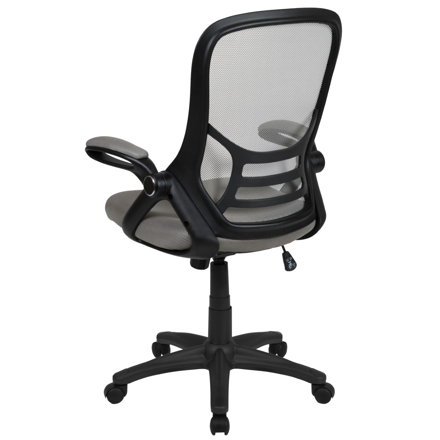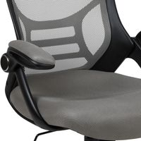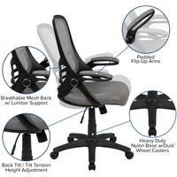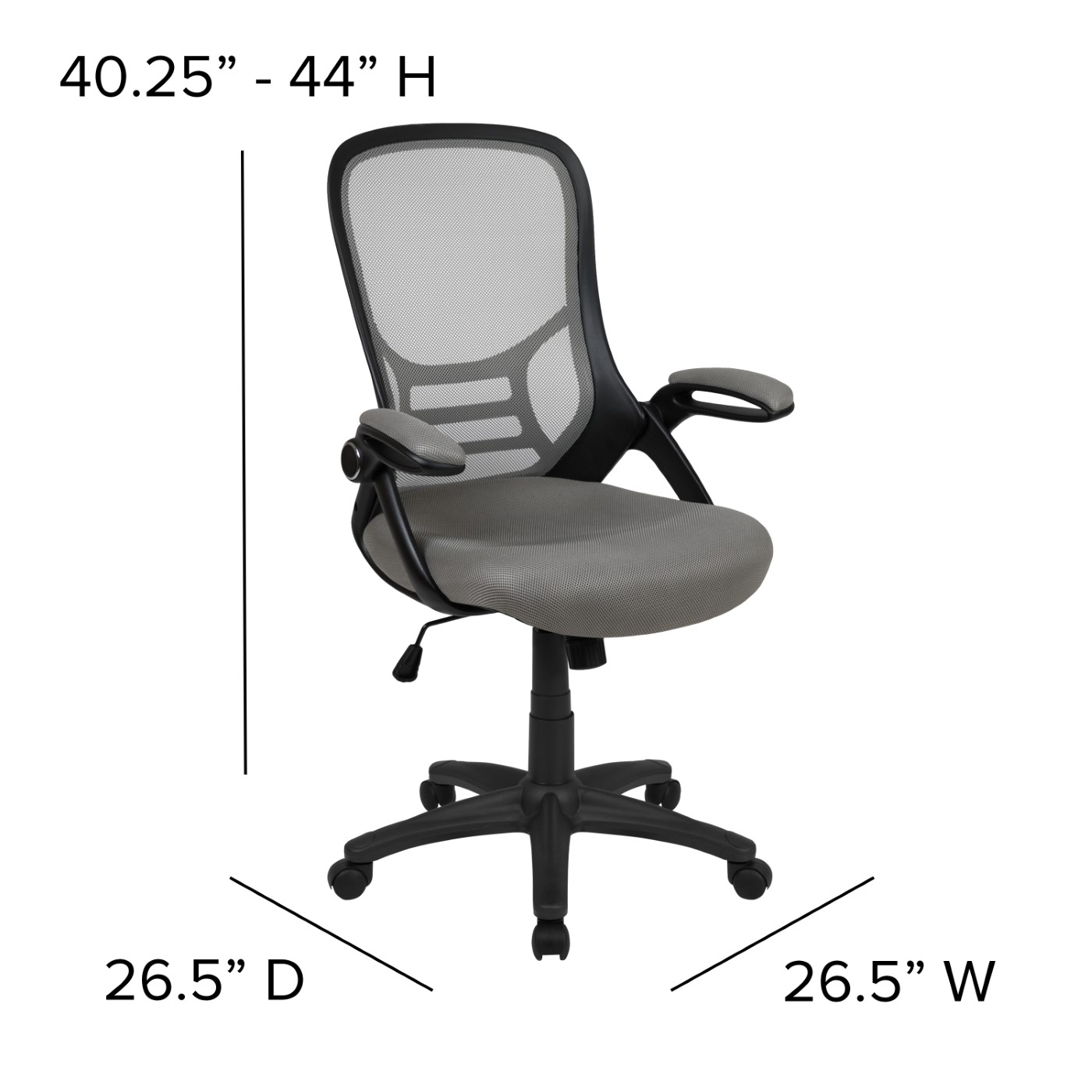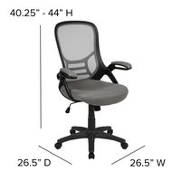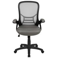 HIGH BACK LIGHT GRAY MESH ERGONOMIC SWIVEL OFFICE CHAIR WITH BLACK FRAME AND FLIP-UP ARMS