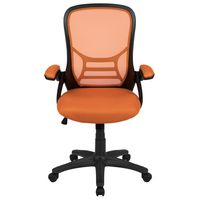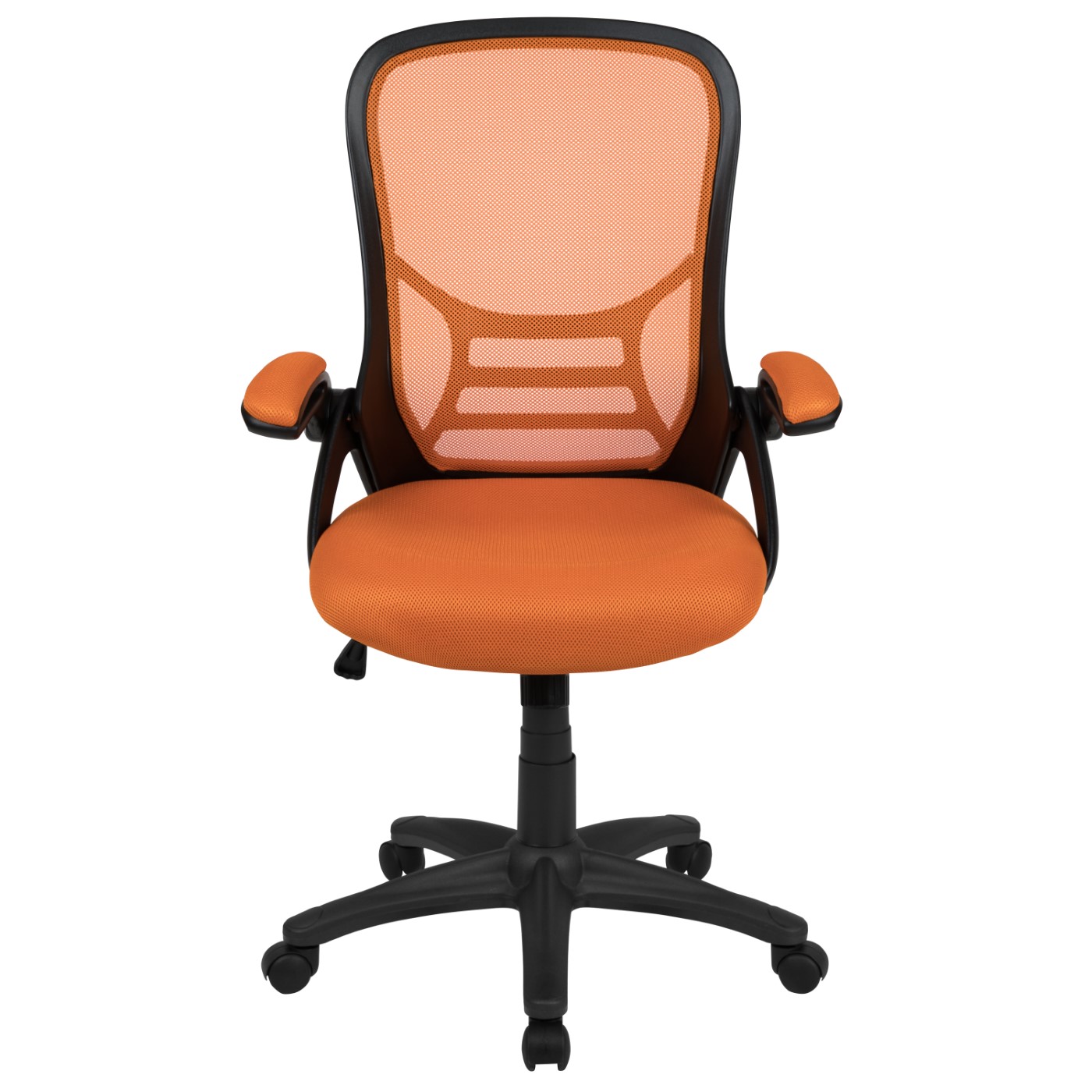 HIGH BACK ORANGE MESH ERGONOMIC SWIVEL OFFICE CHAIR WITH BLACK FRAME AND FLIP-UP ARMS