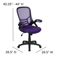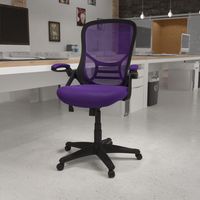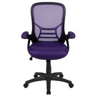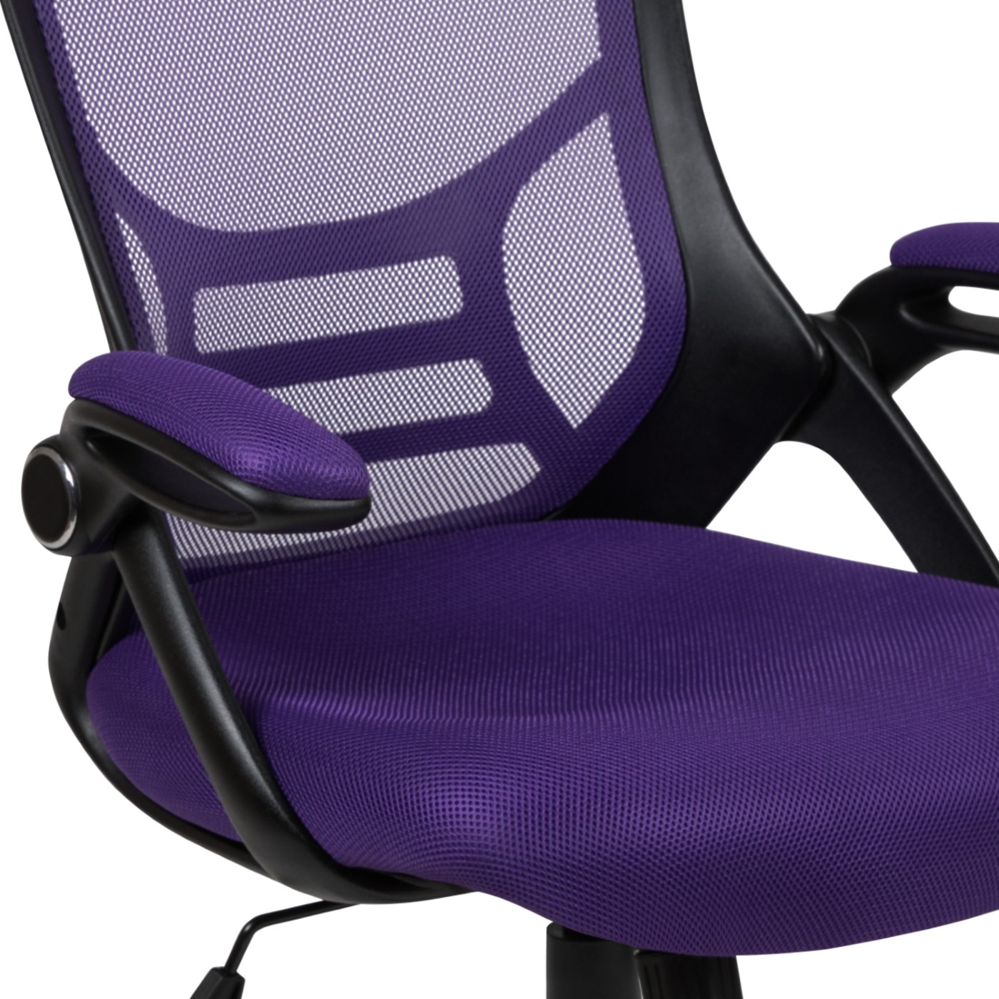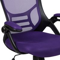HIGH BACK PURPLE MESH ERGONOMIC SWIVEL OFFICE CHAIR WITH BLACK FRAME AND FLIP-UP ARMS