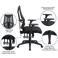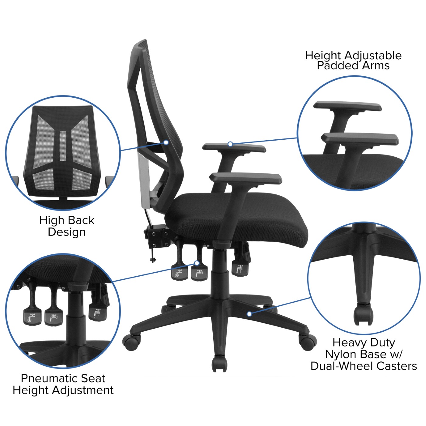 HIGH BACK BLACK MESH MULTIFUNCTION SWIVEL ERGONOMIC TASK OFFICE CHAIR WITH ADJUSTABLE ARMS