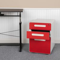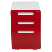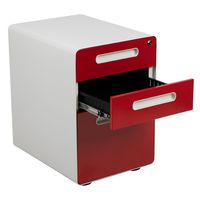 - Modern 3-Drawer Filing Cabinet with White Frame and Red Faceplate