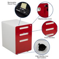 ERGONOMIC 3-DRAWER MOBILE LOCKING FILING CABINET WITH ANTI-TILT MECHANISM & LETTER/LEGAL DRAWER, WHITE WITH RED FACEPLATE