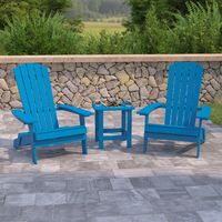2 PACK CHARLESTOWN ALL-WEATHER POLY RESIN FOLDING ADIRONDACK CHAIRS WITH SIDE TABLE IN BLUE: FREE SHIPPING!