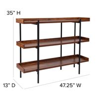 MAYFAIR 3 SHELF 35"H STORAGE DISPLAY UNIT BOOKCASE WITH BLACK METAL FRAME IN RUSTIC WOOD GRAIN FINISH