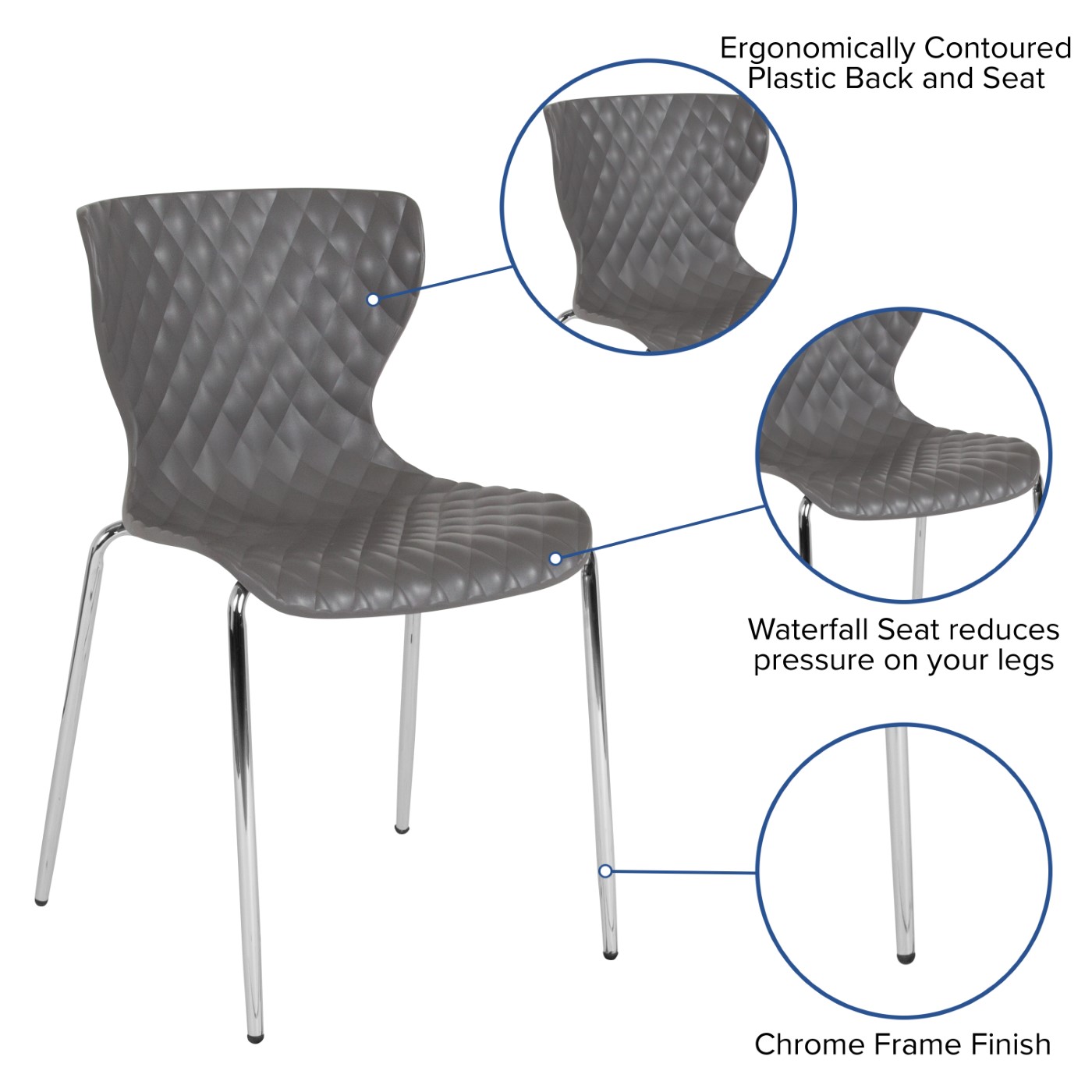 LOWELL CONTEMPORARY DESIGN GRAY PLASTIC STACK CHAIR: FREE SHIPPING!