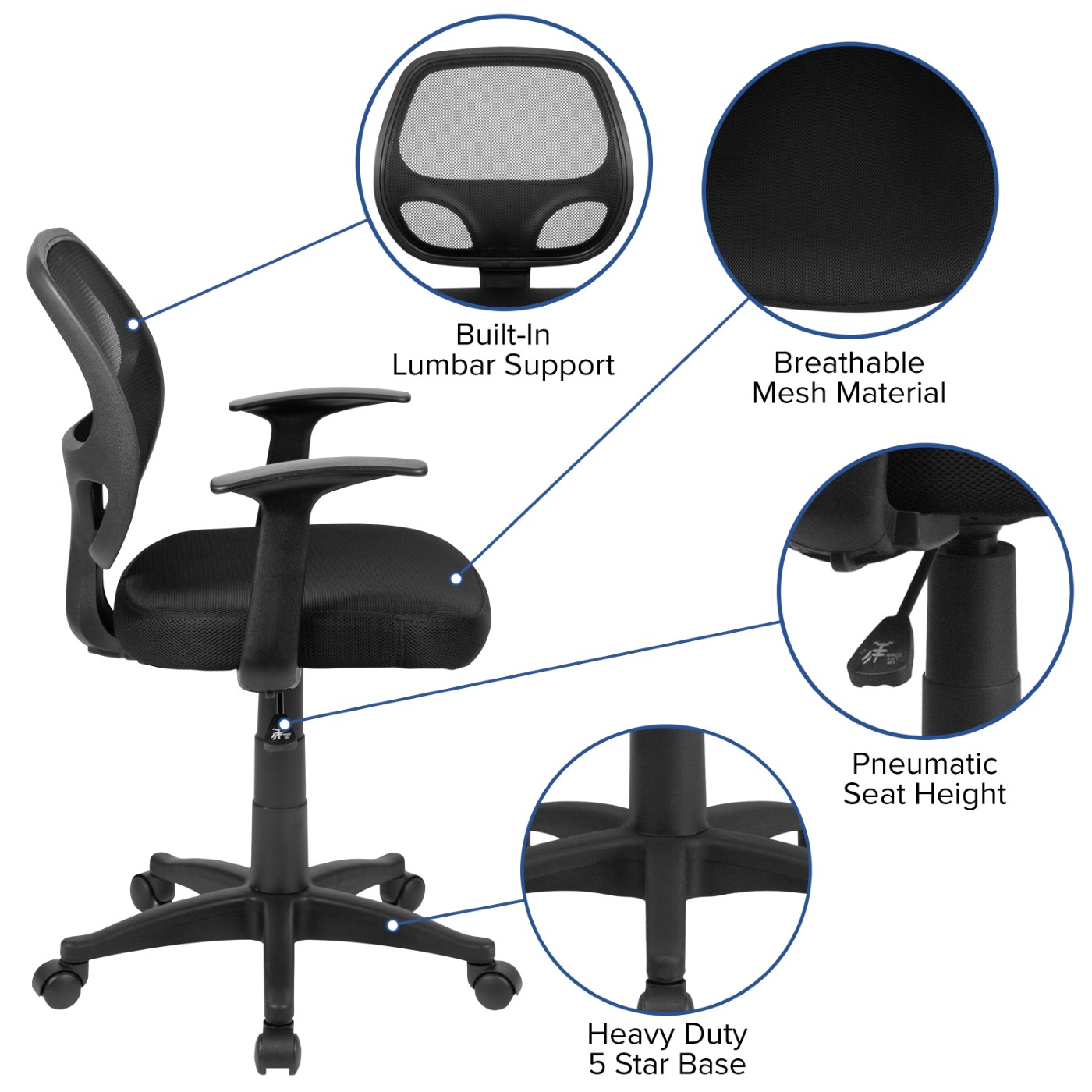 MID-BACK BLACK MESH SWIVEL ERGONOMIC TASK OFFICE CHAIR WITH T-ARMS - DESK CHAIR, BIFMA CERTIFIED