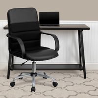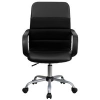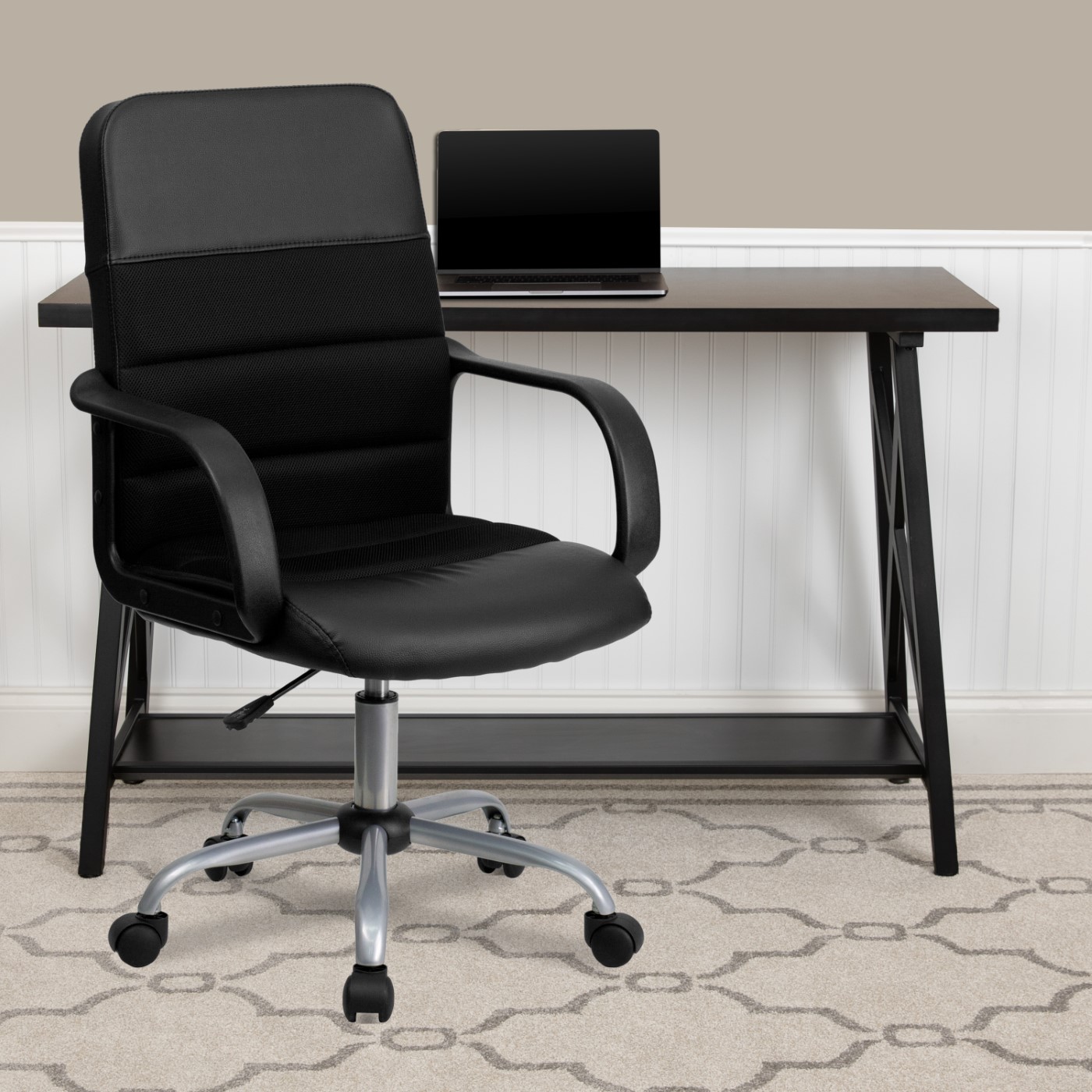 MID-BACK BLACK LEATHERSOFT AND MESH SWIVEL TASK OFFICE CHAIR WITH ARMS: FREE SHIPPING!