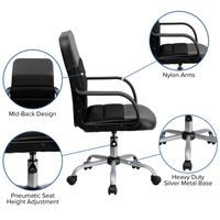 MID-BACK BLACK LEATHERSOFT AND MESH SWIVEL TASK OFFICE CHAIR WITH ARMS