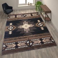 MOHAVE COLLECTION 8' X 10' BLACK TRADITIONAL SOUTHWESTERN STYLE AREA RUG - OLEFIN FIBERS WITH JUTE BACKING