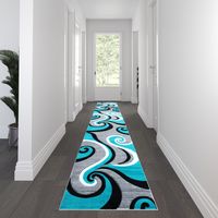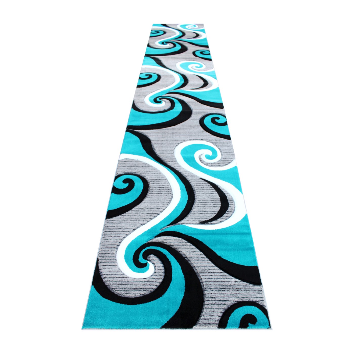 ATHOS COLLECTION 3' X 16' TURQUOISE ABSTRACT AREA RUG - OLEFIN RUG WITH JUTE BACKING - HALLWAY, ENTRYWAY, OR BEDROOM: FREE SHIPPING!