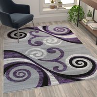 VALLI COLLECTION 5' X 7' PURPLE ABSTRACT AREA RUG - OLEFIN RUG WITH JUTE BACKING - HALLWAY, ENTRYWAY, BEDROOM, LIVING ROOM