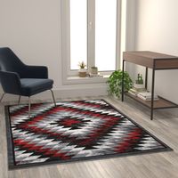 TEAGAN COLLECTION SOUTHWESTERN 5' X 7' RED AREA RUG - OLEFIN RUG WITH JUTE BACKING - ENTRYWAY, LIVING ROOM, BEDROOM