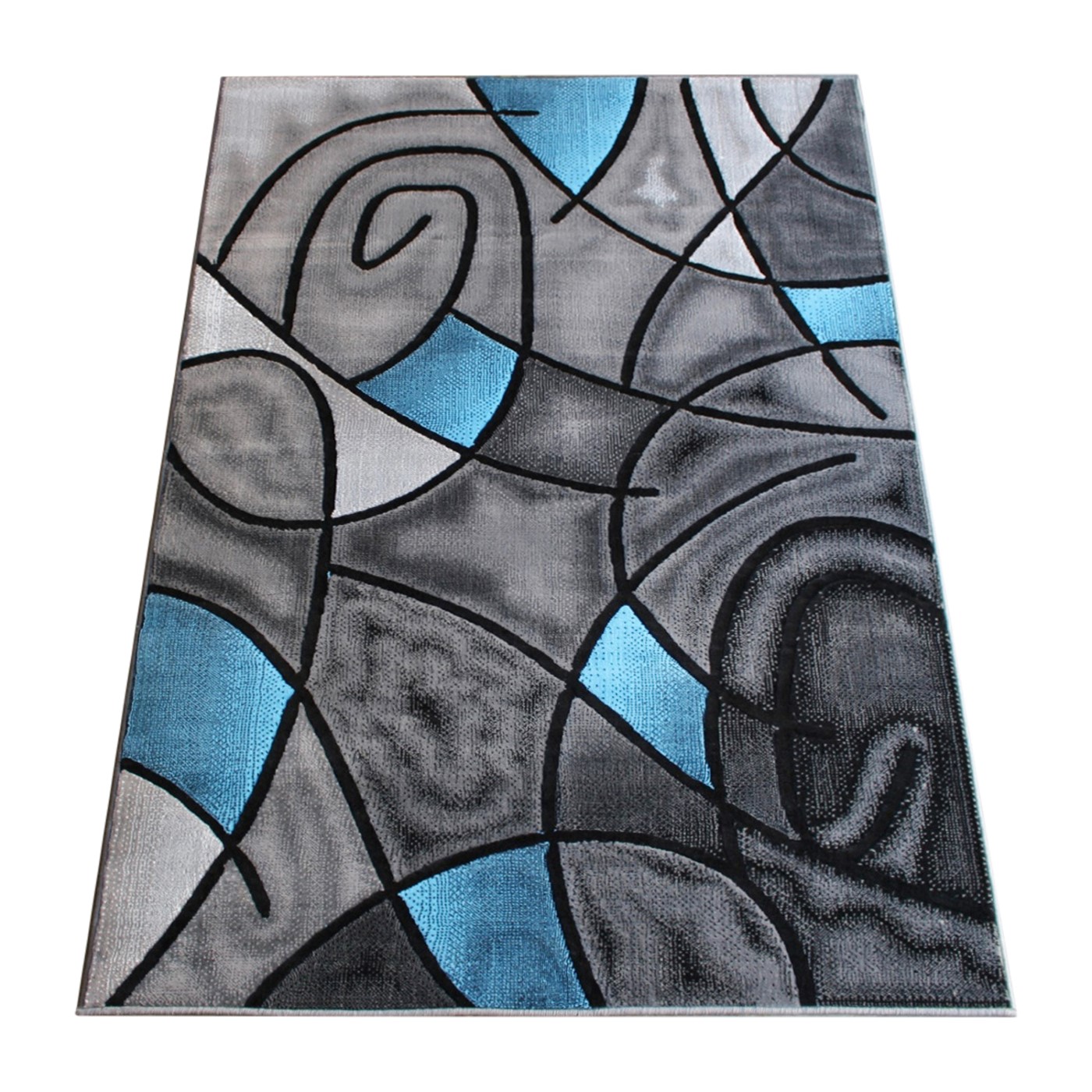 JUBILEE COLLECTION 8' X 10' BLUE ABSTRACT AREA RUG - OLEFIN RUG WITH JUTE BACKING - LIVING ROOM, BEDROOM, & FAMILY ROOM: FREE SHIPPING!