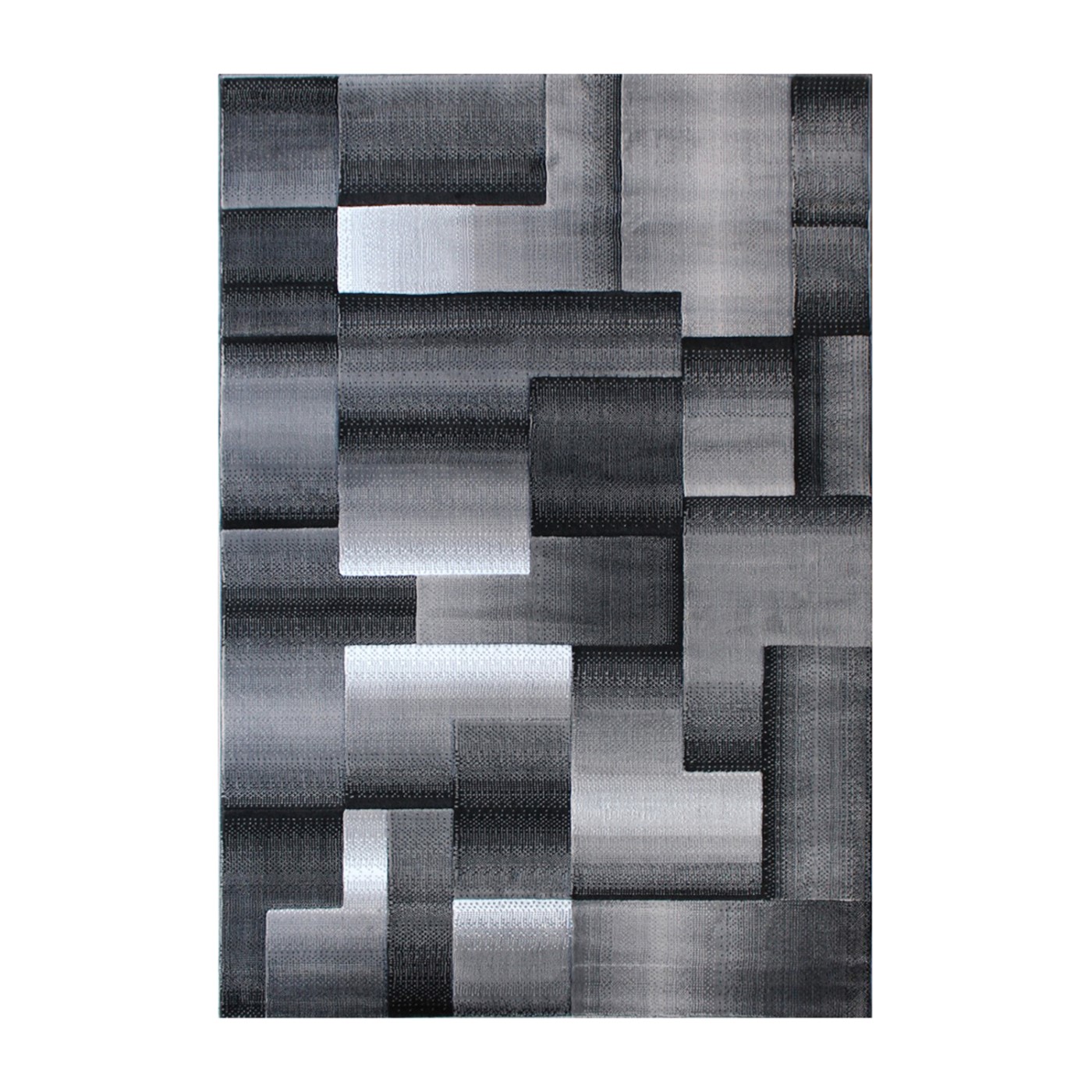 ELIO COLLECTION 5' X 7' GRAY COLOR BLOCKED AREA RUG - OLEFIN RUG WITH JUTE BACKING - ENTRYWAY, LIVING ROOM, OR BEDROOM