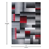 ELIO COLLECTION 5' X 7' RED COLOR BLOCKED AREA RUG - OLEFIN RUG WITH JUTE BACKING - ENTRYWAY, LIVING ROOM, OR BEDROOM