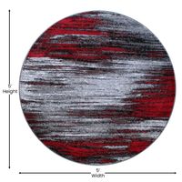 RYLAN COLLECTION 5' X 5' ROUND RED ABSTRACT AREA RUG - OLEFIN RUG WITH JUTE BACKING - LIVING ROOM, BEDROOM, & FAMILY ROOMS
