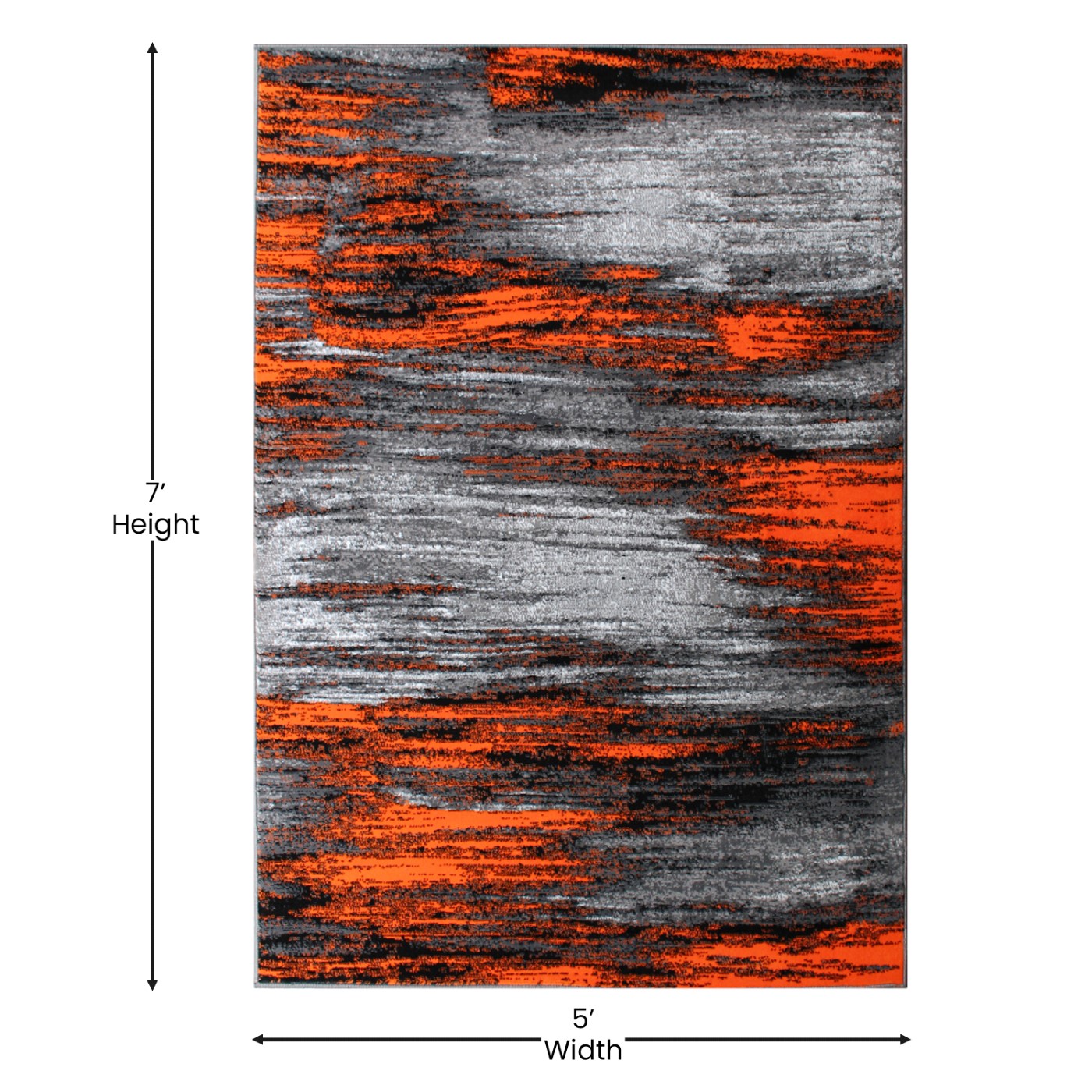RYLAN COLLECTION 5' X 7' ORANGE SCRAPED DESIGN AREA RUG - OLEFIN RUG WITH JUTE BACKING - LIVING ROOM, BEDROOM, ENTRYWAY