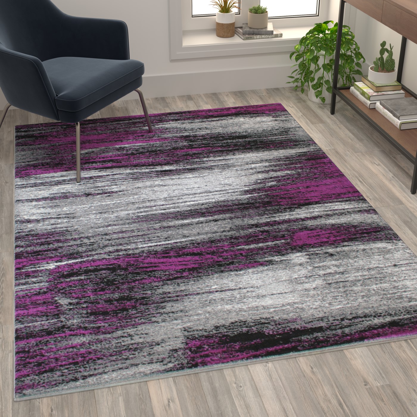 RYLAN COLLECTION 5' X 7' PURPLE SCRAPED DESIGN AREA RUG - OLEFIN RUG WITH JUTE BACKING - LIVING ROOM, BEDROOM, ENTRYWAY