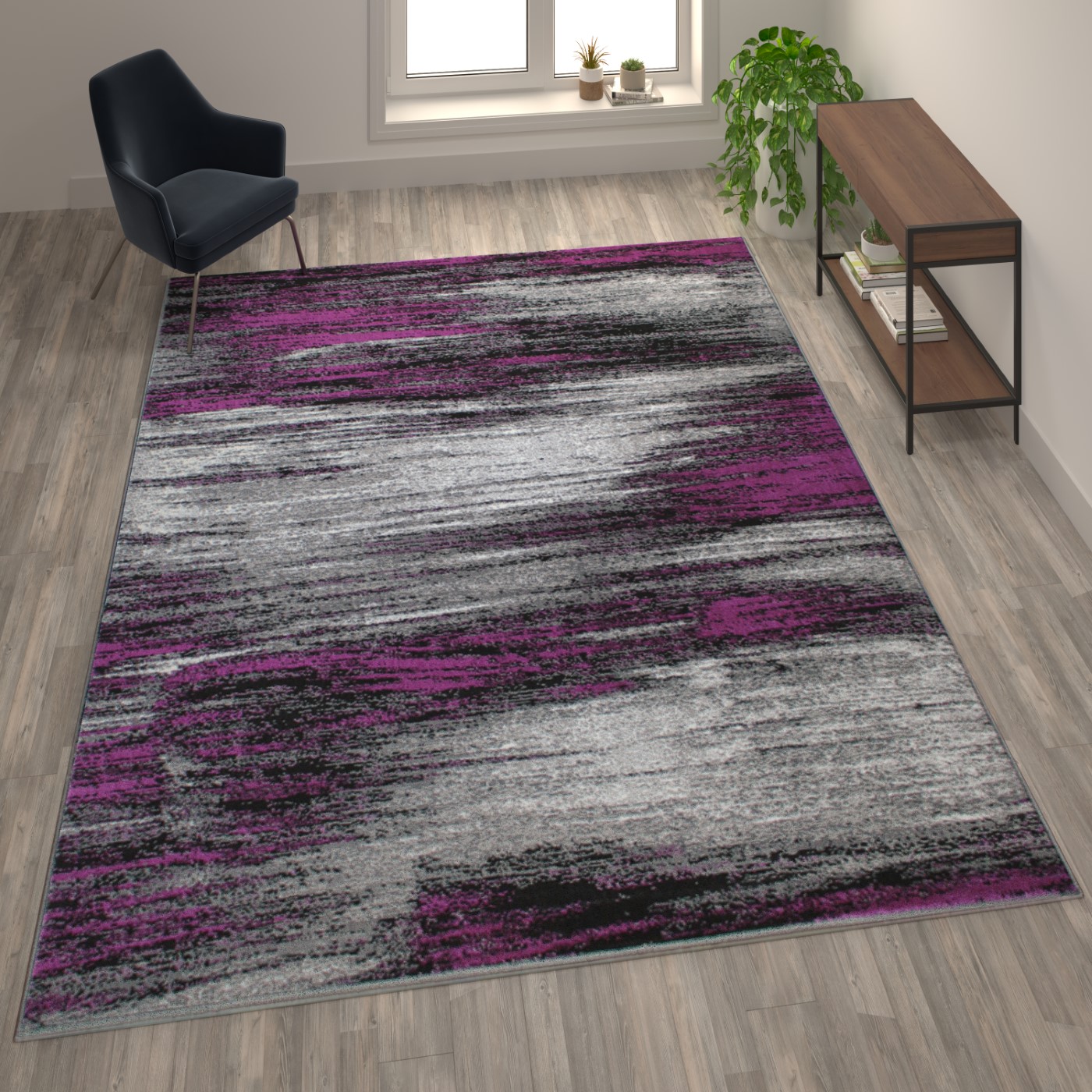 RYLAN COLLECTION 8' X 10' PURPLE SCRAPED DESIGN AREA RUG - OLEFIN RUG WITH JUTE BACKING - LIVING ROOM, BEDROOM, ENTRYWAY