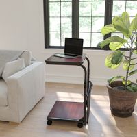 MOBILE SIT-DOWN, STAND-UP MAHOGANY COMPUTER ERGONOMIC DESK WITH REMOVABLE POUCH (ADJUSTABLE RANGE 27'' - 46.5'')