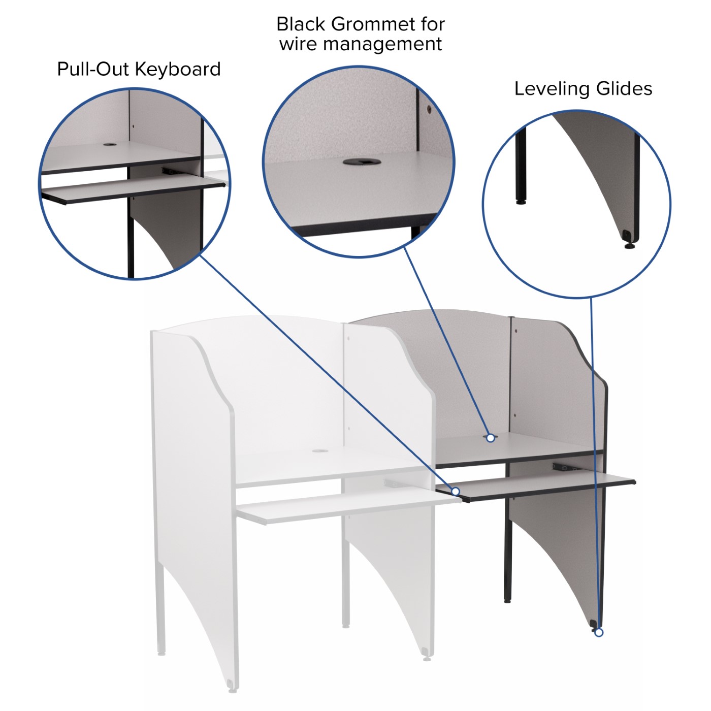 ADD-ON STUDY CARREL IN NEBULA GREY FINISH: FREE SHIPPING!