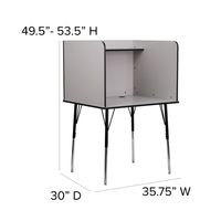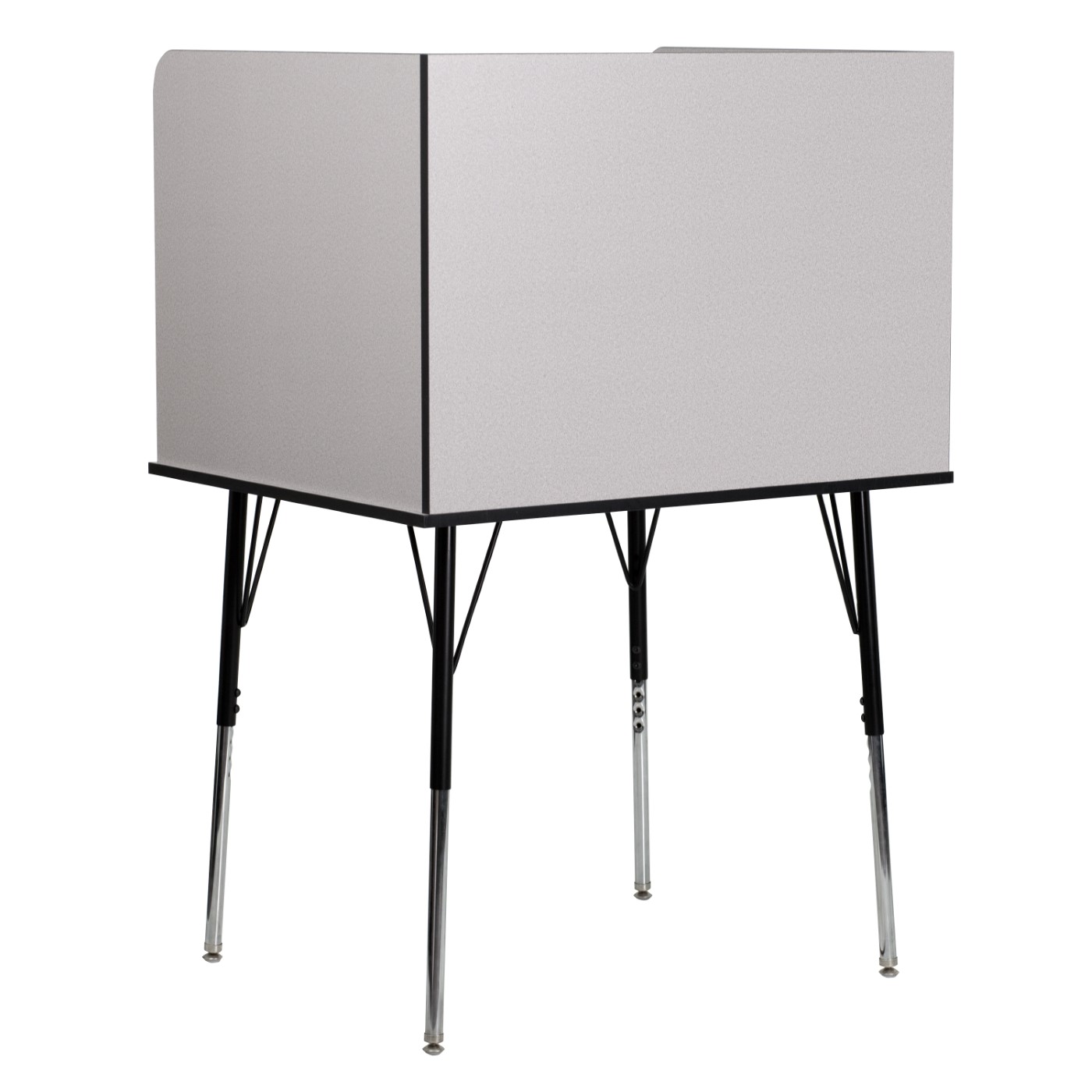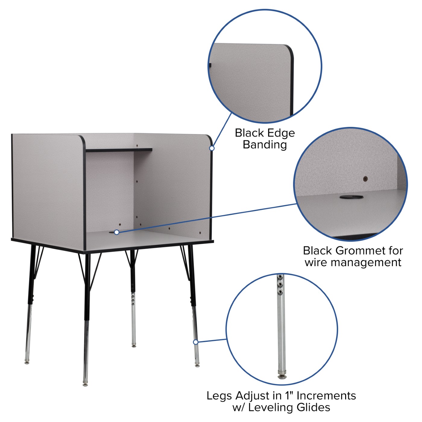 STAND-ALONE STUDY CARREL WITH TOP SHELF - HEIGHT ADJUSTABLE LEGS AND WIRE MANAGEMENT GROMMET - NEBULA GREY FINISH