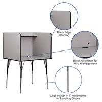 STAND-ALONE STUDY CARREL WITH TOP SHELF - HEIGHT ADJUSTABLE LEGS AND WIRE MANAGEMENT GROMMET - NEBULA GREY FINISH: FREE SHIPPING!