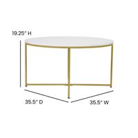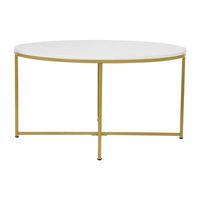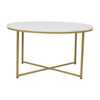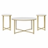 HAMPSTEAD COLLECTION COFFEE AND END TABLE SET - WHITE MARBLED LAMINATE TOP & BRUSHED GOLD CRISSCROSS FRAME, 3 PIECE TABLE SET