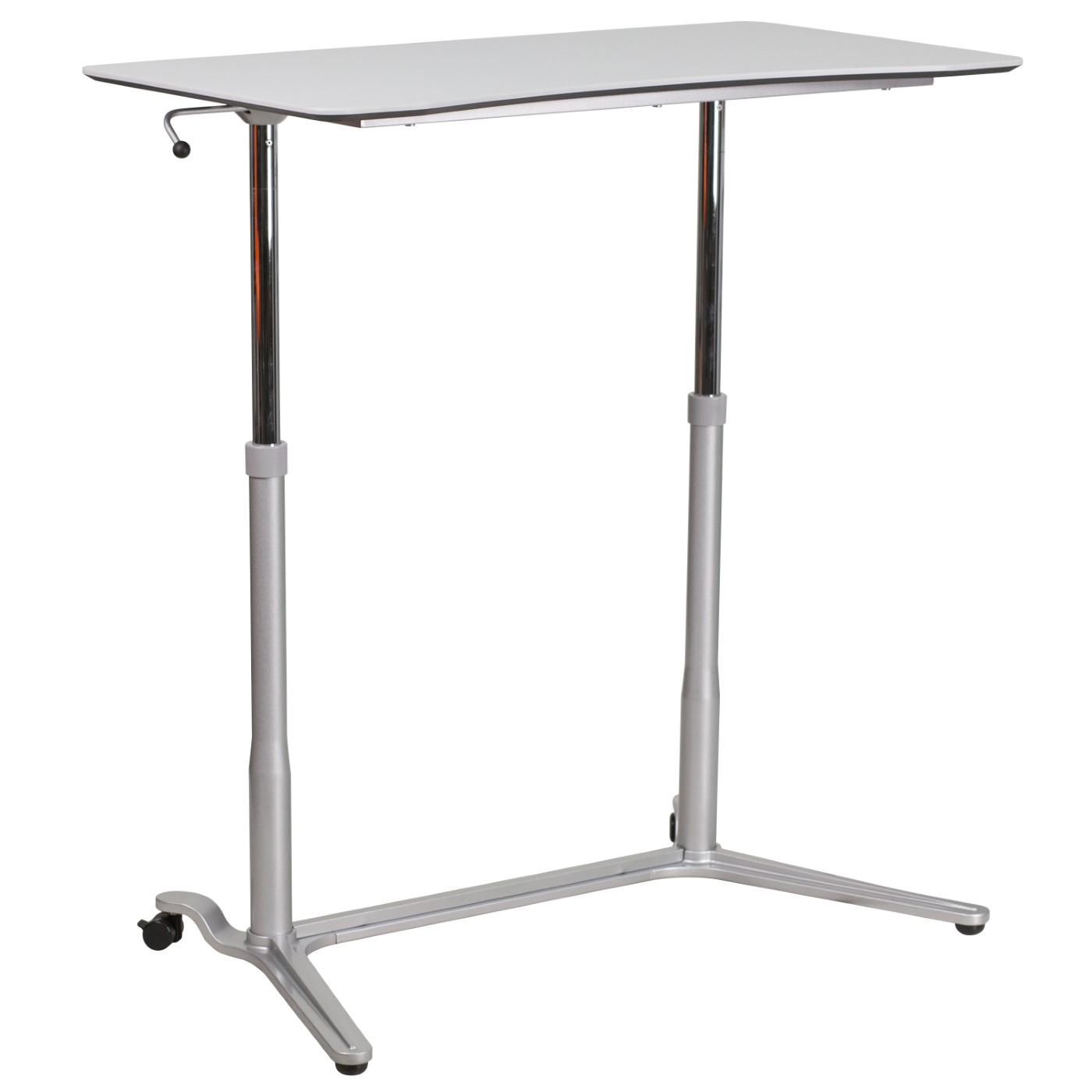 SIT-DOWN, STAND-UP LIGHT GRAY COMPUTER ERGONOMIC DESK WITH 37.375''W TOP (ADJUSTABLE RANGE 29'' - 40.75''): FREE SHIPPING!