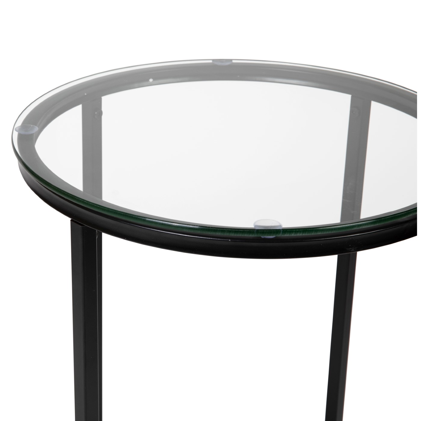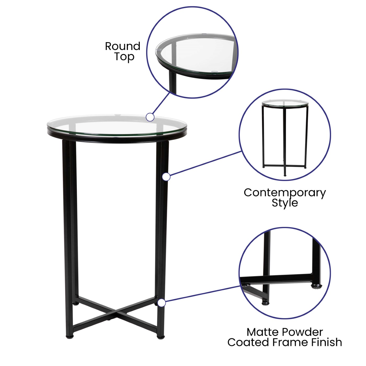 GREENWICH COLLECTION END TABLE - MODERN CLEAR GLASS ACCENT TABLE WITH CRISSCROSS MATTE BLACK FRAME