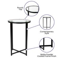 GREENWICH COLLECTION END TABLE - MODERN CLEAR GLASS ACCENT TABLE WITH CRISSCROSS MATTE BLACK FRAME: FREE SHIPPING!
