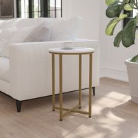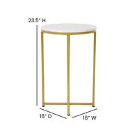 HAMPSTEAD COLLECTION END TABLE - MODERN WHITE MARBLE FINISH ACCENT TABLE WITH CRISSCROSS BRUSHED GOLD FRAME: FREE SHIPPING!