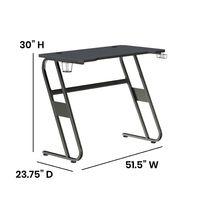 BLACK GAMING ERGONOMIC DESK WITH CUP HOLDER AND HEADPHONE HOOK