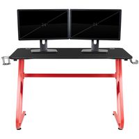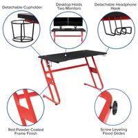RED GAMING ERGONOMIC DESK WITH CUP HOLDER AND HEADPHONE HOOK