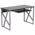 BLACK COMPUTER DESK WITH PULL-OUT KEYBOARD TRAY AND CROSS-BRACE FRAME