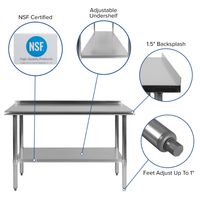 - Rust Resistant Stainless Steel Commercial Kitchen Prep Table with Adjustable Undershelf and 1.5" Backsplash