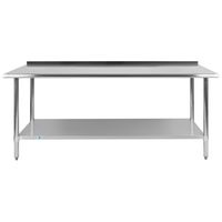 STAINLESS STEEL 18 GAUGE PREP AND WORK TABLE WITH 1.5" BACKSPLASH AND UNDERSHELF - NSF CERTIFIED - 72"W X 30"D X 36"H: FREE SHIPPING!
