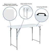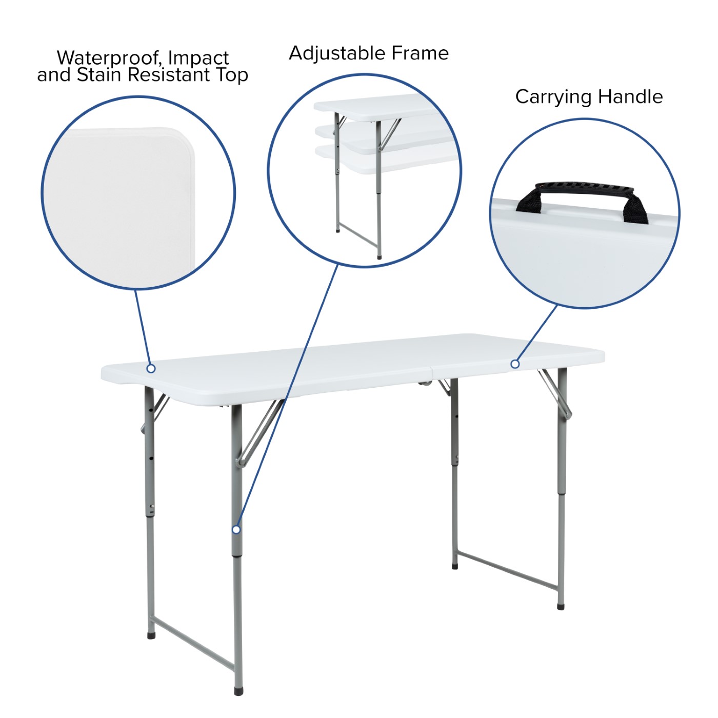 4-FOOT HEIGHT ADJUSTABLE BI-FOLD GRANITE WHITE PLASTIC FOLDING TABLE