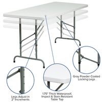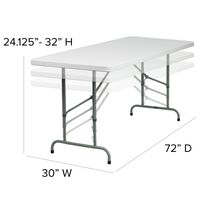 6-FOOT HEIGHT ADJUSTABLE GRANITE WHITE PLASTIC FOLDING TABLE